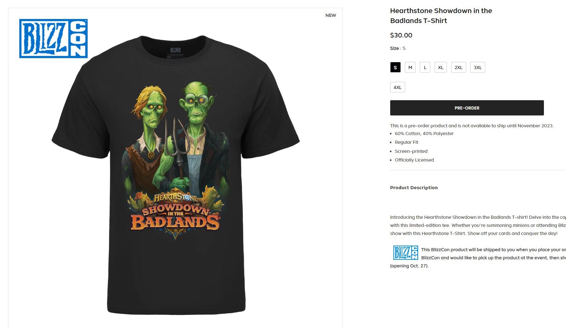 Но на этом зацепки не прекратились, и это даже мягко сказано. Один из сотрудников официального интернет-магазина товаров Blizzard по ошибке выставил на продажу футболку, на которой виднеется принт с парой зомби в готическом стиле и названием нового дополнения Hearthstone. Страница быстро была удалена, но интернет все помнит.