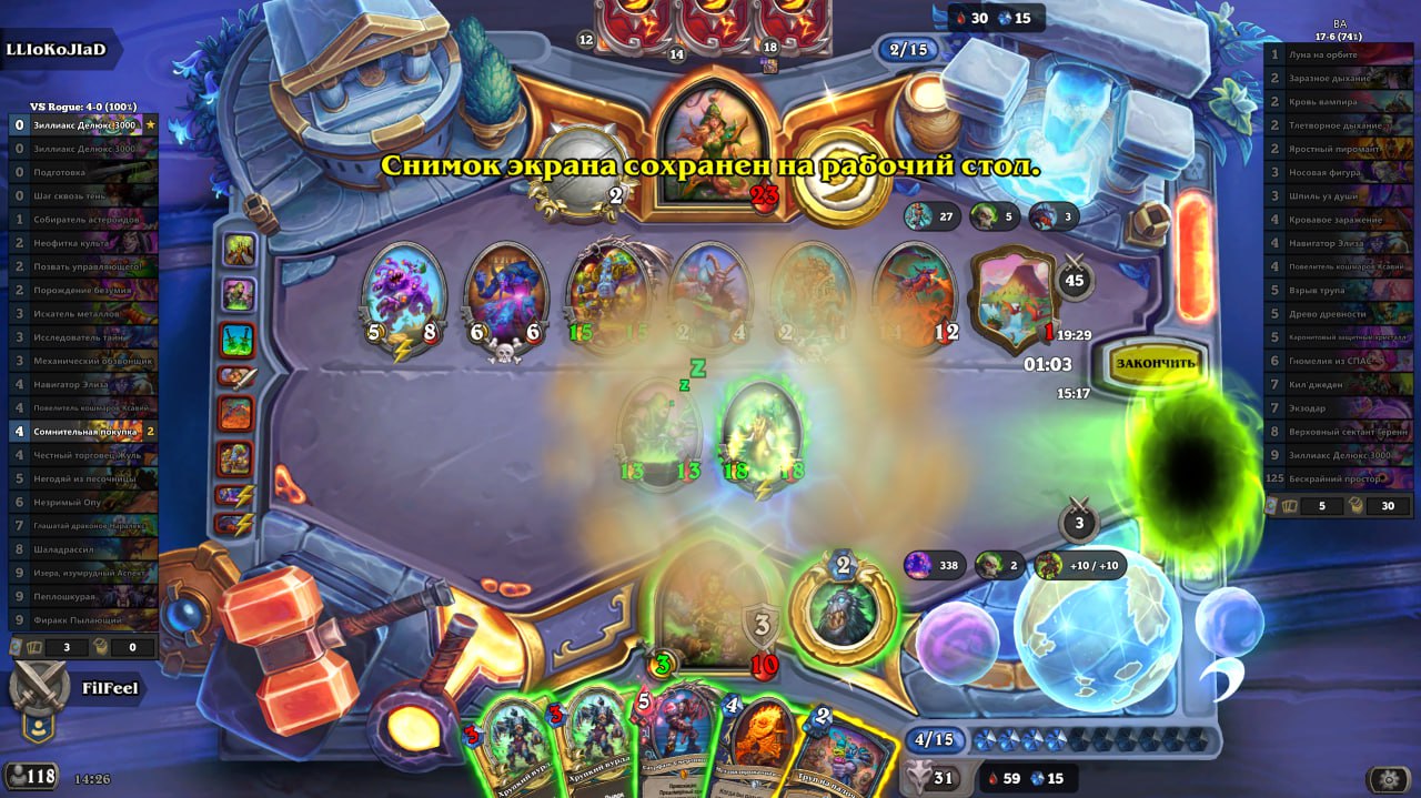 Решающая игра первого раунда плей оффа против Шоколада при счёте 2-2, именно этот топдек позволил мне пройти дальше, а затем на МТ и Чемпионат Мира (прикрепляю скрин)