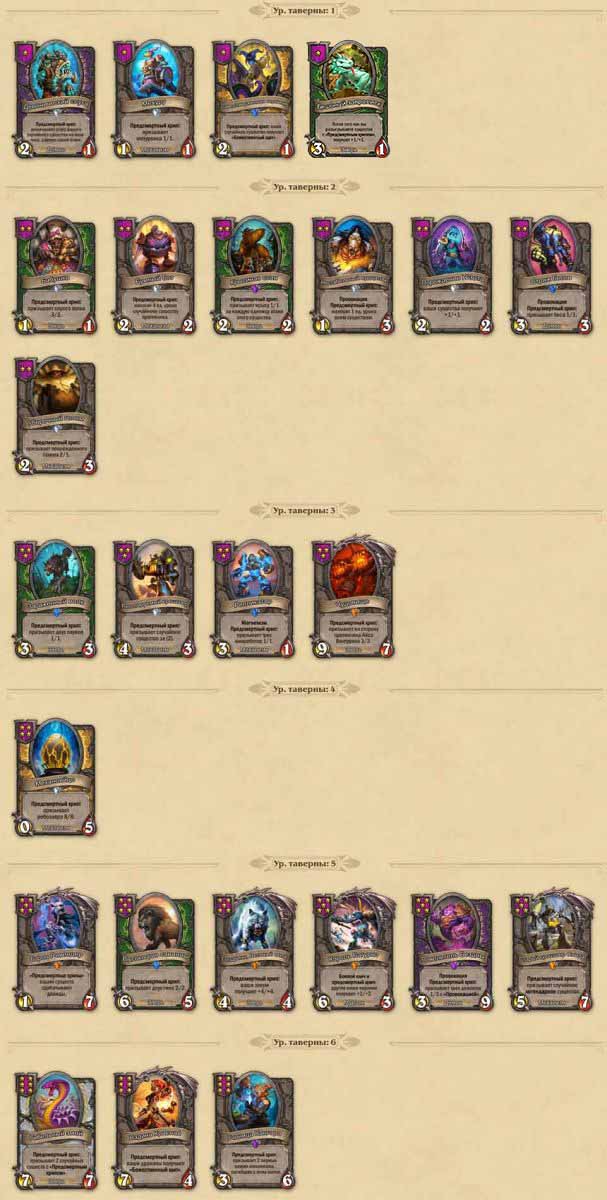 Почти все стратегии предсмертных хрипов строятся вокруг существ 5-6 уровней таверны. Взять тир-5 важно в любой партии, а до тир-6 нужно подниматься не всегда. Делайте это, если вы очень сильны или сталкиваетесь с выбывшим игроком, а также в случае, если партия затянулась и улучшение таверны стоит немного золота.