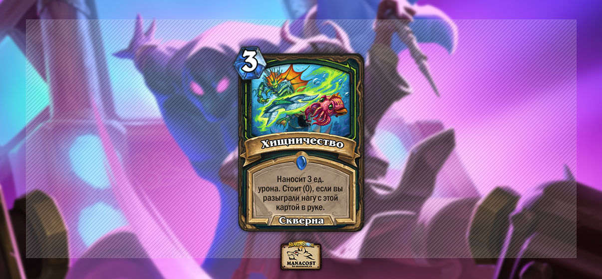 Очевидно, разработчики не хотят убивать потенциал легендарки, поэтому слегка срезают ее летальность через ослабление связок. Вероятнее всего, Хищничество станет удешевляться до 1 ед. маны после розыгрыша наги — такой же нерф когда-то давно настиг Пронзающий взгляд.