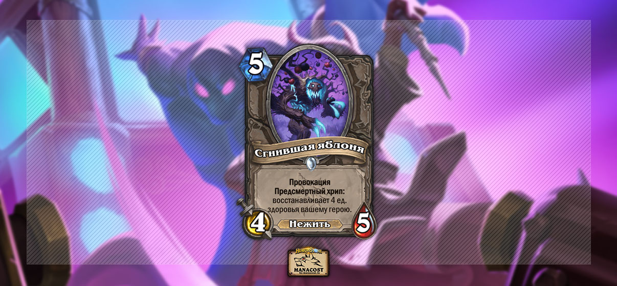 И самый непонятный бафф не только этого патча, но и за долгое время в целом, это Сгнившая яблоня. Вопросов больше, чем ответов. Как ее могут баффнуть? Зачем? Почему именно сейчас? Разработчики просто решили поставить ее в один ряд с современными картами, удешевив до 4 маны? Маловероятно она спасет кого-то от агро колод даже за 4 маны. Или наоборот, она станет огромным дропом 8/8 за 8 и ее смогут использовать биг колоды? Может быть, это спойлер на грядущий мини-набор? Или ее вообще баффнули за красивый арт? Абсолютно ничего непонятно.