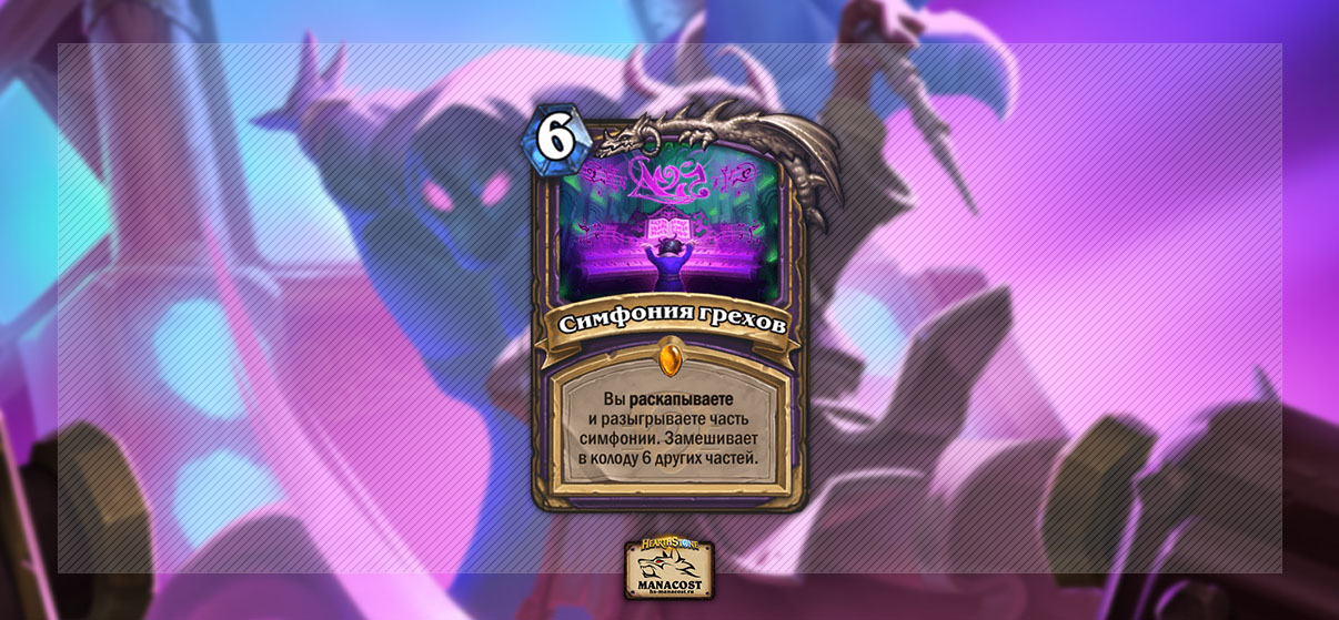 Почему-то многие считают, что Симфония грехов — это какой-то сверхмощный инструмент Чернокнижника, хотя на самом деле карта является одной из самых худших во всех колодах, где она лежит (согласно статистике). Очевидно, разработчики хотят не только дать шанс очередной незаигравшей песне, но и усилить слабую карту класса, с которой ему было бы весело играть.