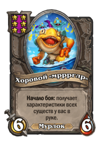 Это самая простая и очевидная комбинация, которой часто пользуются столы мурлоков. Чистый Плавник держат в руке всю игру до конца и раскачивают, используя мурлоков. Басожабр, а позднее и Хоровой «мрррглр», помогают извлечь выгоду из больших характеристик Чистого Плавника в руке.