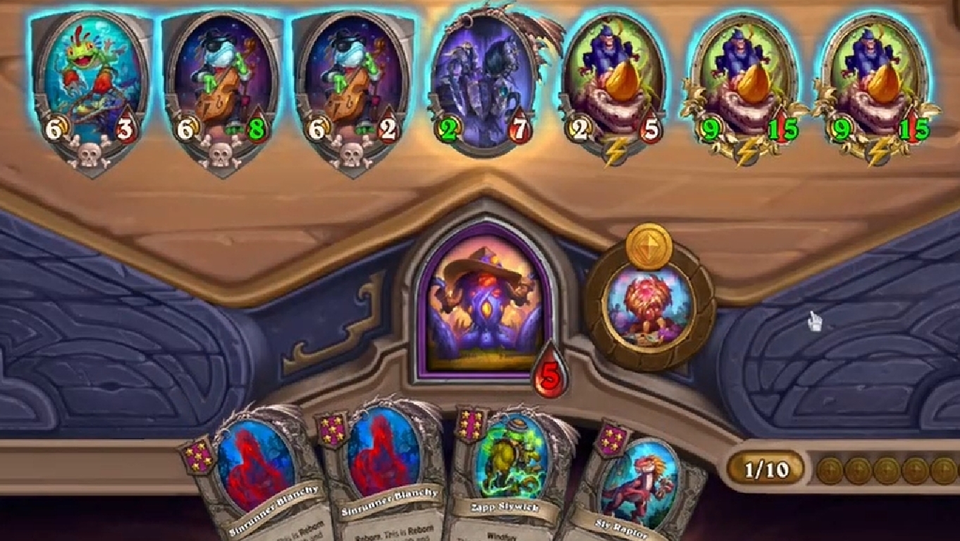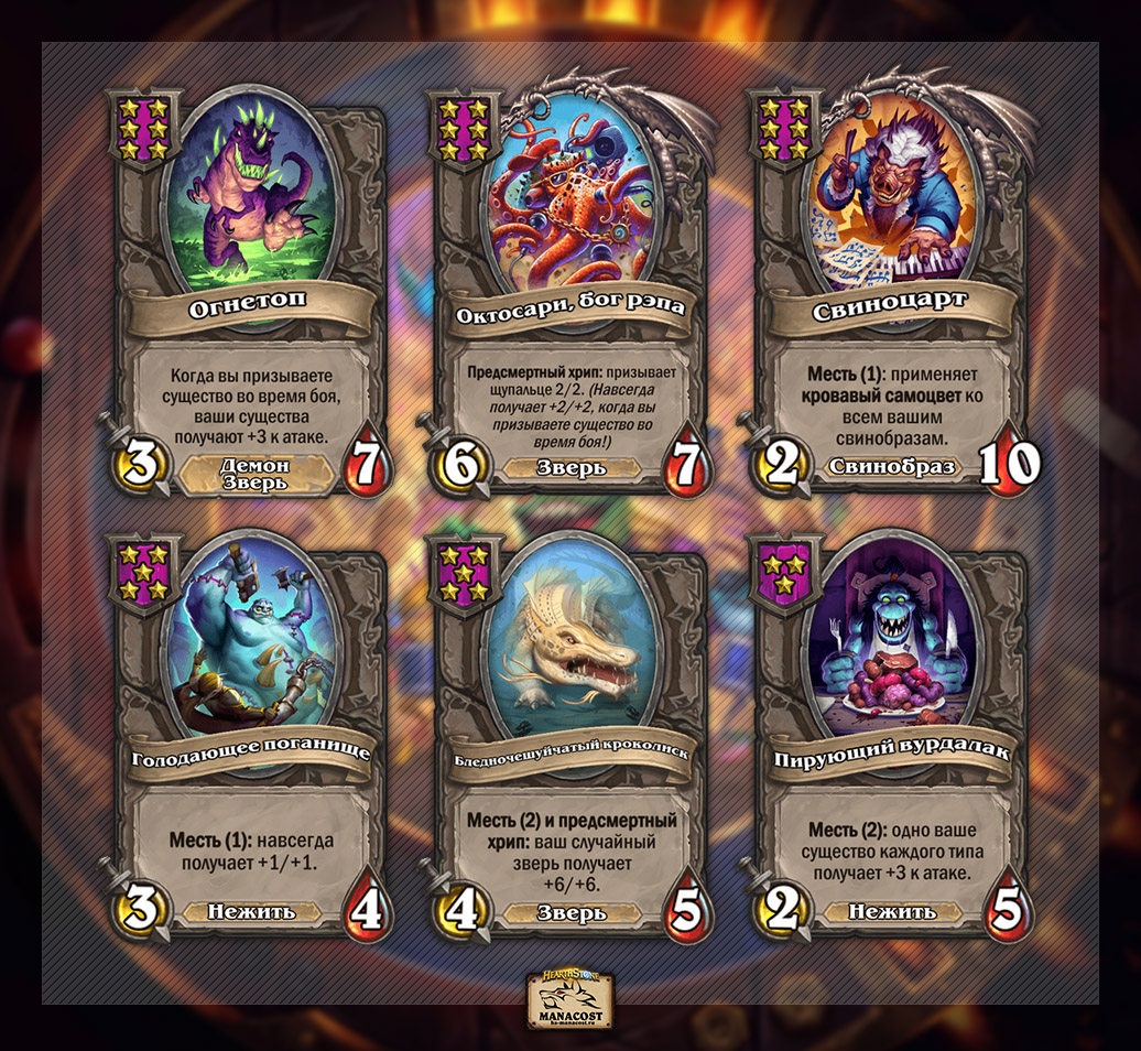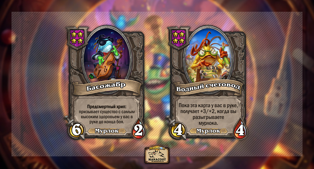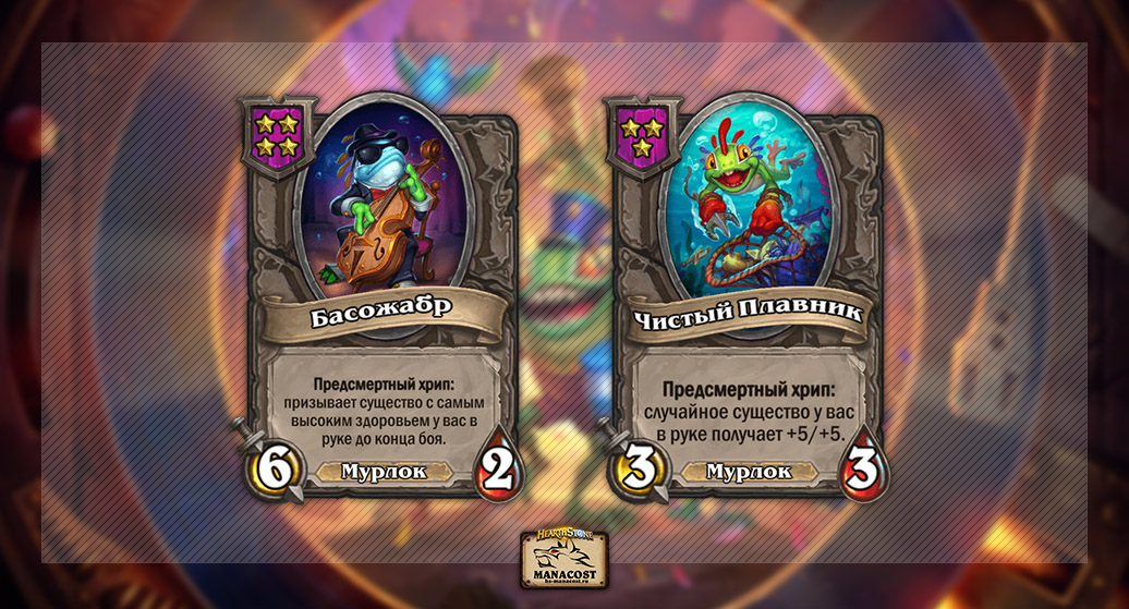Эту связку карт можно взять на стол мурлоков, но она может появиться и в любой другой композиции. На столе достаточно этих двух карт: они отлично работают друг с другом. Остальные юниты могут не быть мурлоками, да и в руке может быть совсем не мурлок.
