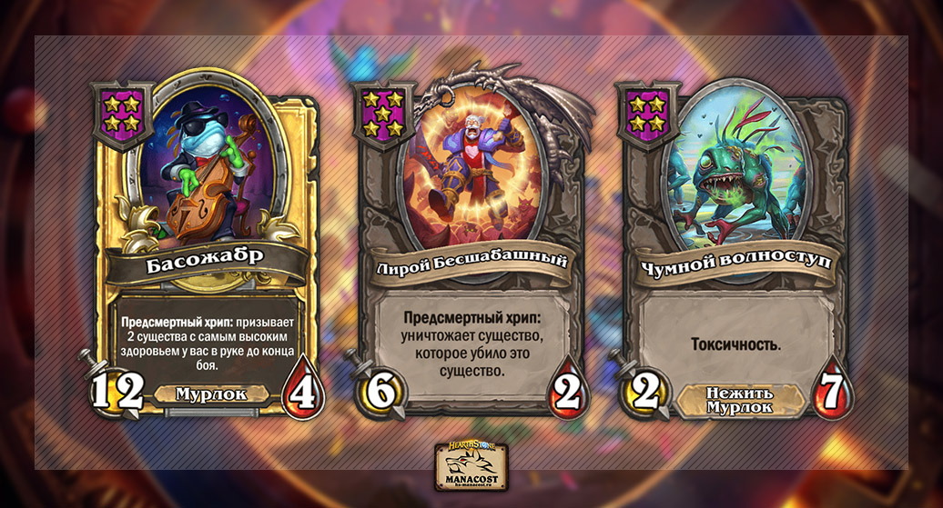 Думайте об этом так: если у вас есть золотой Басожабр с токсичностью и пара Лироев в руке, то с помощью всего одного существа на столе вы разменяетесь с 3 юнитами оппонента.
