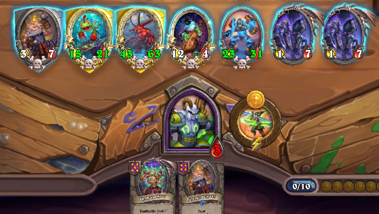 Самой Лошади нужно постараться дать хоть какие-то баффы статов. Проще всего сделать это с помощью тир-3 Чистого Плавника, хотя сработает и Мамаша-медведица. В идеальном сценарии нужно дать Лошади провокацию с помощью Спарринг-партнера или Бдительной камнерожденной еще в таверне Боба. Это не обязательно, но так у противника будет меньше шансов сломать вам план на игру.