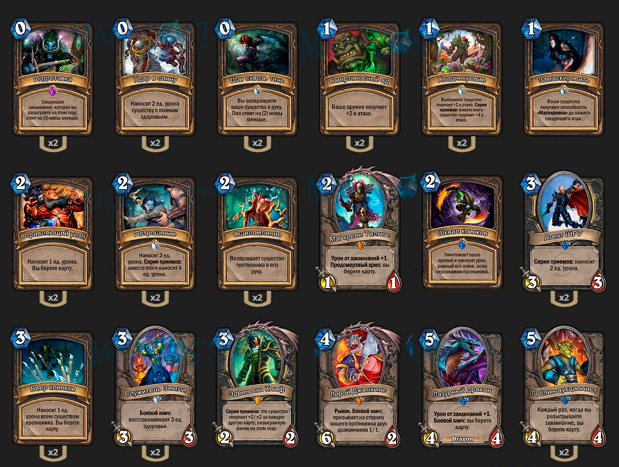 Миракл Разбойник считается самой сильной колодой классического Hearthstone, хотя и одной из самых сложных. Многое делают комбинации Хладнокровия и Замаскировать — оба заклинания стоят 1 ману. К тому же есть сильнейшие комбинации Лироя Дженкинса за 4 маны с Шагом сквозь тень. Заклинание удешевит легендарку до 2 маны.