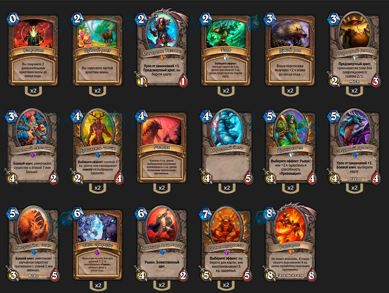 Топовая комбинация старой меты: Сила природы + Дикий рев — наносит 14 урона с пустого стола. Учитывайте и куда более сильные версии классических карт, которые нерфили в течение последних лет. Озарение, Буйный рост, Хранитель чащи и Древо мудрости будут намного сильнее в Классическом режиме, чем сейчас в Стандарте и Вольном.