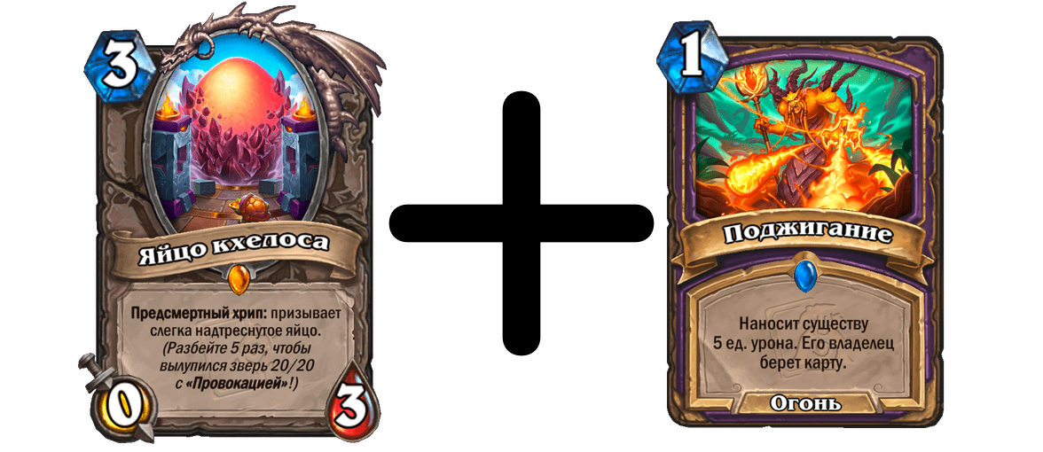 - Яйцо Кхелоса — обязательная карта, без которой колода не функционирует. Эта карта также находится в последнем мини-наборе (2000 золота). Важной частью сборки является и бесплатная легендарка