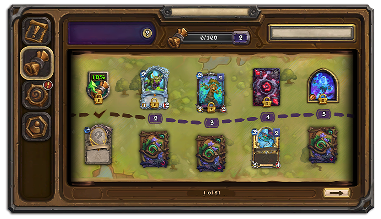 Бесплатная Лента наград «Объятий Изумрудного Сна» включает в себя случайную эпическую карту, две случайные легендарные карты, пропуски в таверну, новую рубашку карт и уйму комплектов и золота! Кроме того, вы сможете получить 14 золотых карт и легендарную карту нового дополнения «Глашатай драконов Наралекс»!* За завершение Ленты наград вы получите один из множества обликов на выбор.