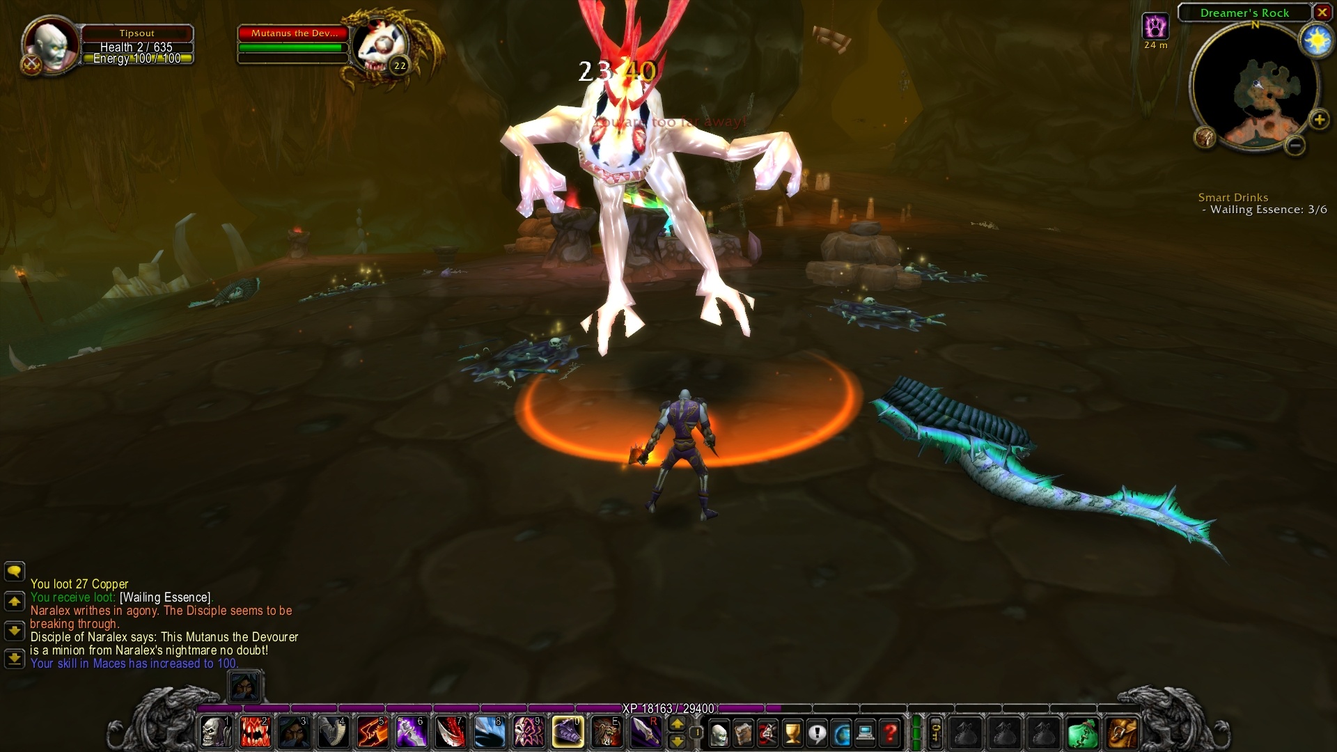 Муйон рассказывает о беде, которая случилась с Наралексом. Ученик друида говорит, что кошмары его учителя разрастаются и грозят всем жителям Степей. Наралекса нужно разбудить, но перед этим — убить всех друидов когтя, которые сошли с ума в Пещерах Стенаний.