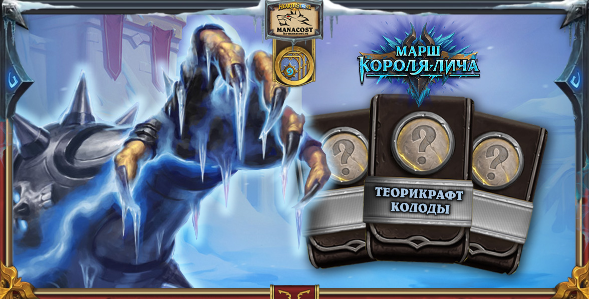 В середине предрелизной недели прошел день теорикрафт стримов, где практически весь Twitch и некоторые каналы на Youtube смогли поиграть новыми картами Марша Короля-лича друг с другом. У каждого игрока было только около 6-8 часов на игру, а идей и колод, которые хотелось бы попробовать, — масса. По этой причине не стоит расценивать все колоды как уже готовые рабочие варианты.