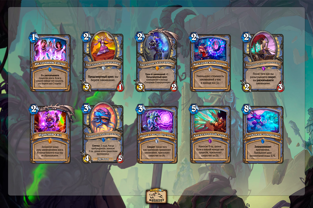 В Руинах Запределья не так много полезных карт для Мага. Примечателен Колдовской поток, пусть он и станет хуже без Ученицы чародея. Увы, сильные Звездочет Солариан и Прилив сил понерфлены в прошлом. Может быть, стоит вернуть их изначальные показатели после ротации?