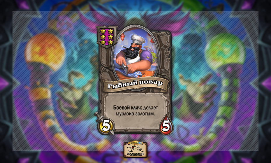 Рыбный повар — самый простой способ сделать золотого Магмалока. Пусть вы не раскопаете тир-6 юнита при розыгрыше золотого существа, ход все равно очень выгодный. Можно играть Рыбного повара и на Палеомурлока-разведчика в таверне: так с высокой вероятностью вы раскопаете новые копии Магмалока и соберете золотое существо классическим способом.