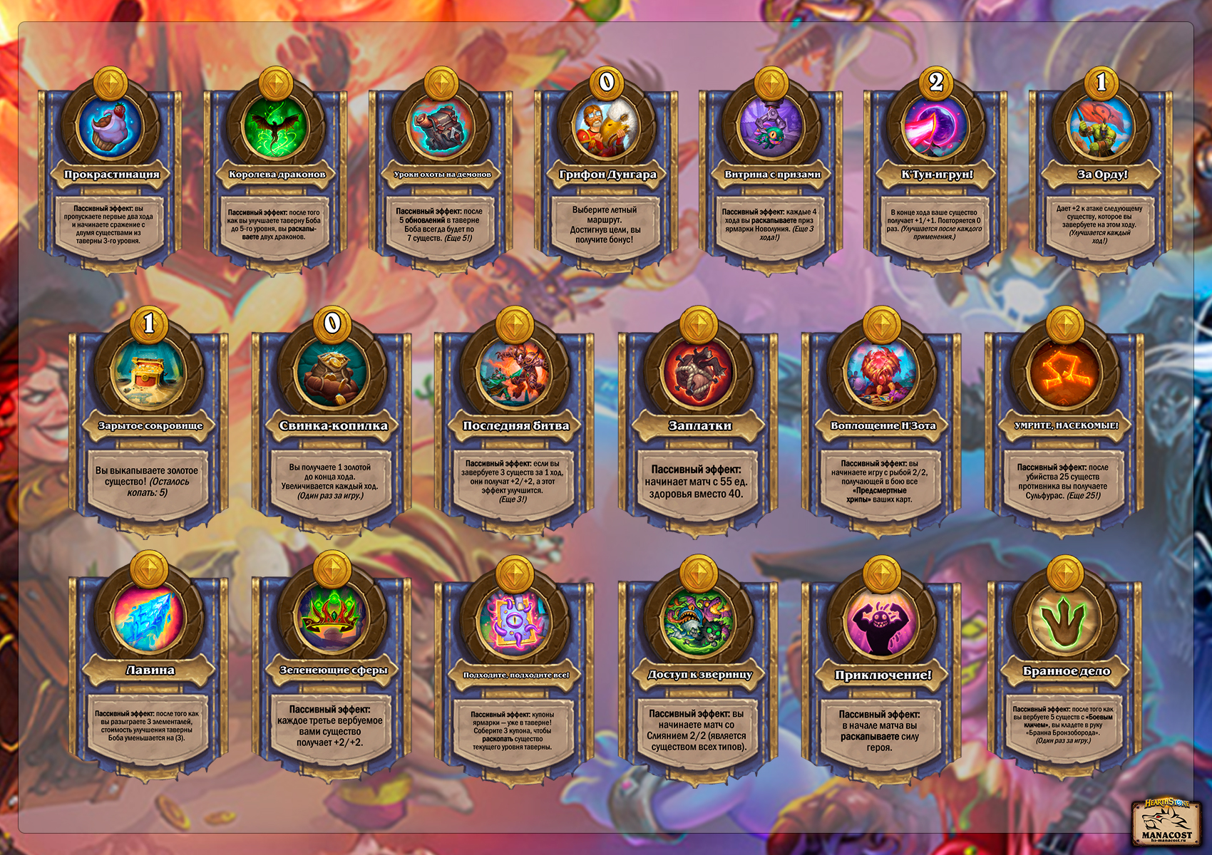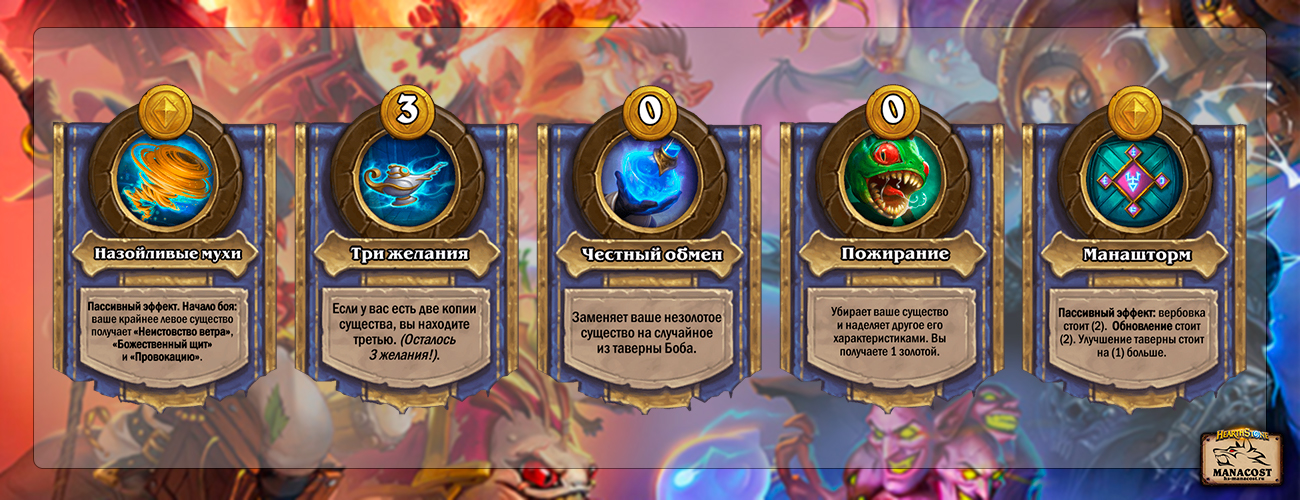 Обратите внимание на силу героя Миллхауса Манашторма. Она хороша в некоторых ситуациях, но обязательно повысит стоимость улучшения таверны на 1 монету, что может сыграть злую шутку.