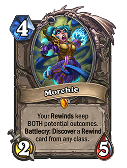 Встречайте Морхи — злобного двойника Хроми! В отличие от Хроми, которая защищает временные линии, Морхи легко идет против правил. Перемотка позволяет вам изменить случайный эффект разыгранной карты, но Морхи исполняет оба исхода. Больше временных линий — больше веселья!