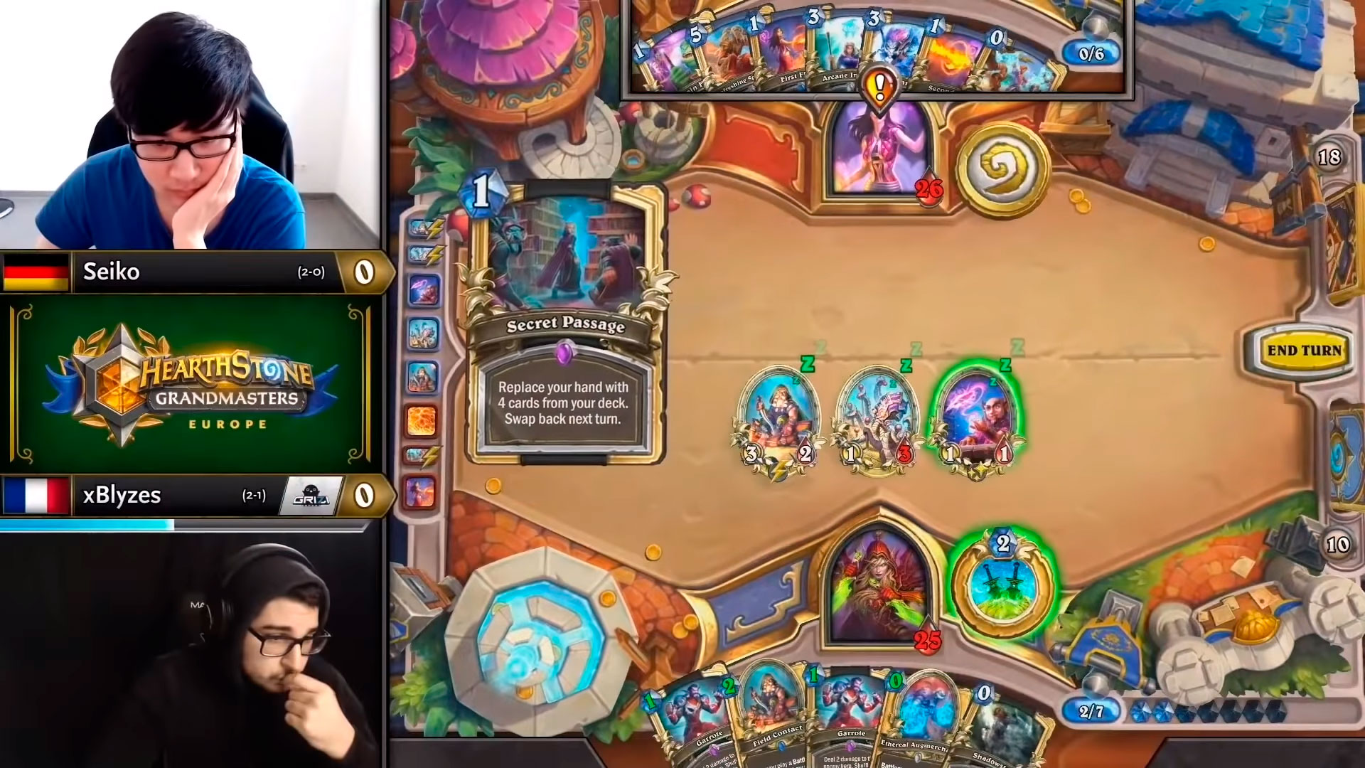 Матч-ап с Квест Шаманом может быть очень запутанным. Иногда Тралл открывается с быстрой руки и заставляет отбиваться от раннего давления. Однако если старт Шамана довольно медленный, вы можете попытаться перебрать побольше карт до выставления Связного и осьмибота. Thijs оставляет Шулерство против Bunnyhoppor, чтобы гарантировать себе источник добора, даже несмотря на то, что активировать его не так просто.
