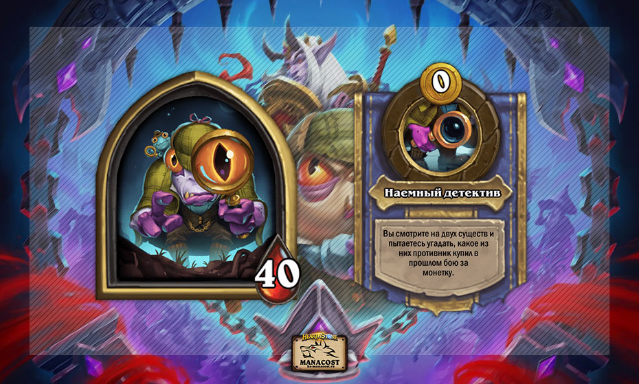 Силу героя Мурлока Холмса можно играть каждый ход, начиная со второго. Она бесплатная, так что использовать способность вы должны каждый ход. Вы увидите двух существ — нужно угадать, какое было в армии героя в прошлом бою (в официальном переводе ошибка). Сила героя может показать вам обычных и золотых существ из таверны, порой попадаются токены, Золотая обезьяна, Хвастун Авангарда, а еще есть опция «не было существ».