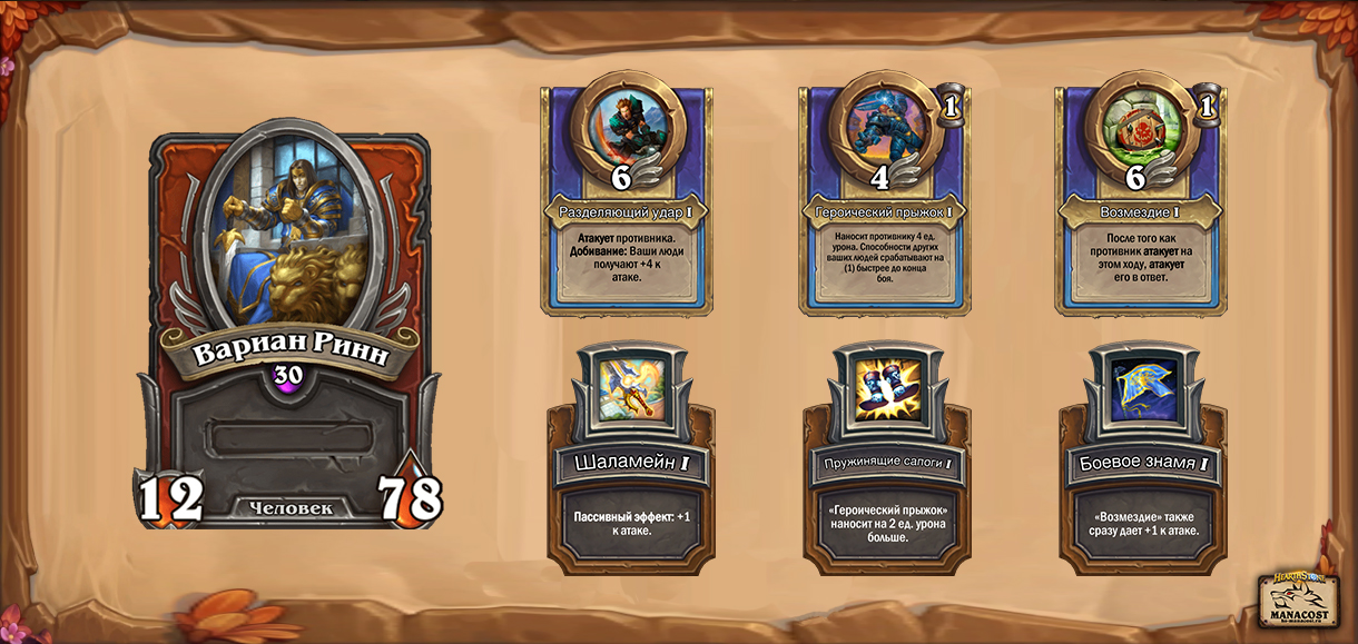 Возможно, хорошим баффом Вариана и людей в целом стало бы улучшение Героического прыжка. У способности можно совсем убрать перезарядку, чтобы она использовалась уже на первый ход. Такой бафф может показаться слишком сильным, но не забывайте, что даже в этом случае композиции с Самуро смогут ваншотнуть Вариана на первый ход еще до того, как он сыграет что-либо.