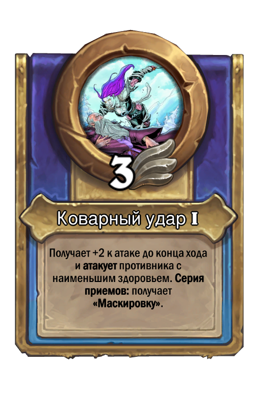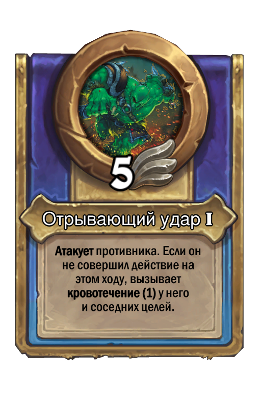 провокация на 1 | 1 | 2 | 3 | 3 хода. - Третья способность: +2 | +3 | +4 | +5 | +6 к атаке; 5 | 8 | 11 | 13 | 15 здоровья.