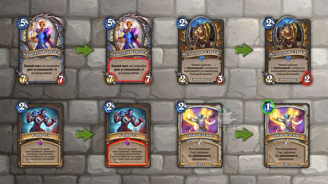 - Стало: Боевой клич: вы получаете урон от заклинаний +2 до конца матча.