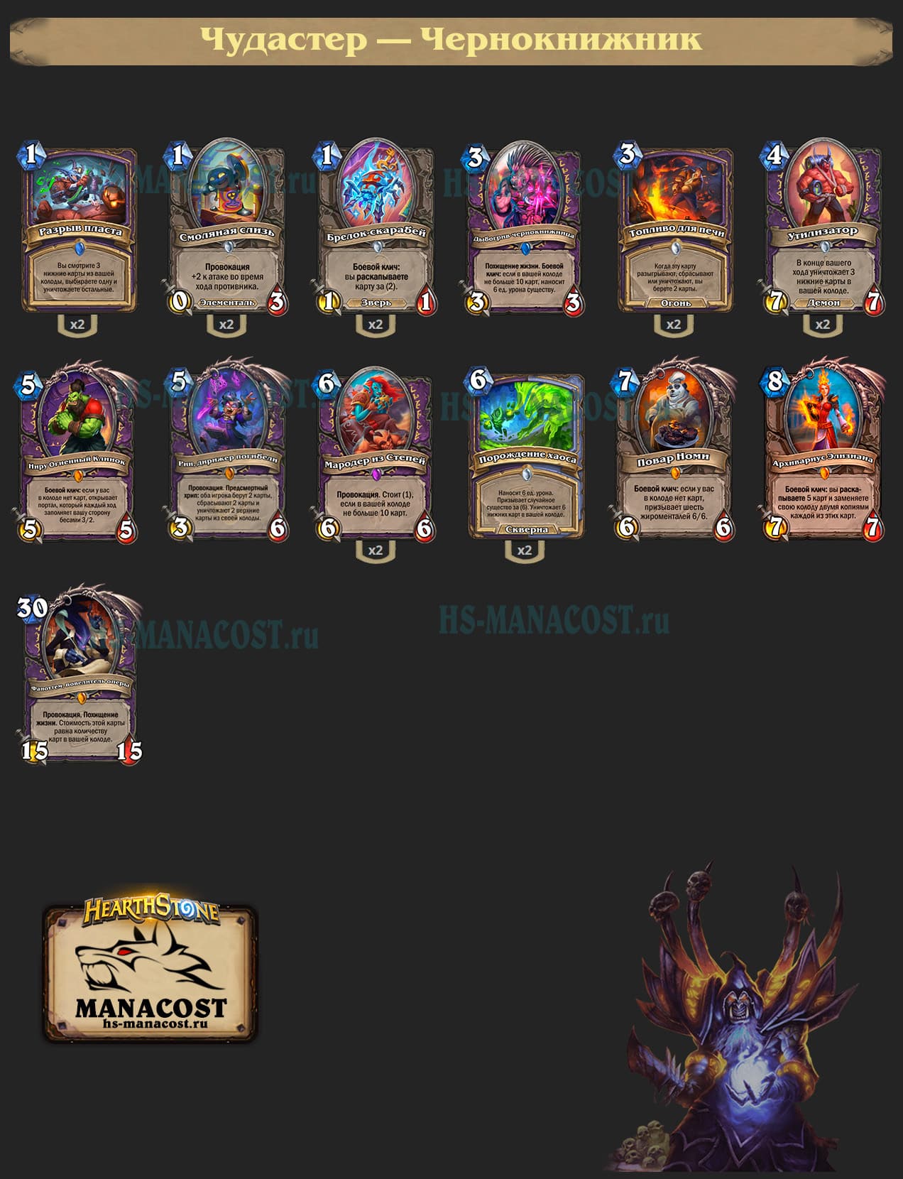 Описание потасовки: Непревзойденный Чудастер готов поделиться своими секретными колодами! Выберите ту, что вам приглянется, и сразитесь против других его творений!