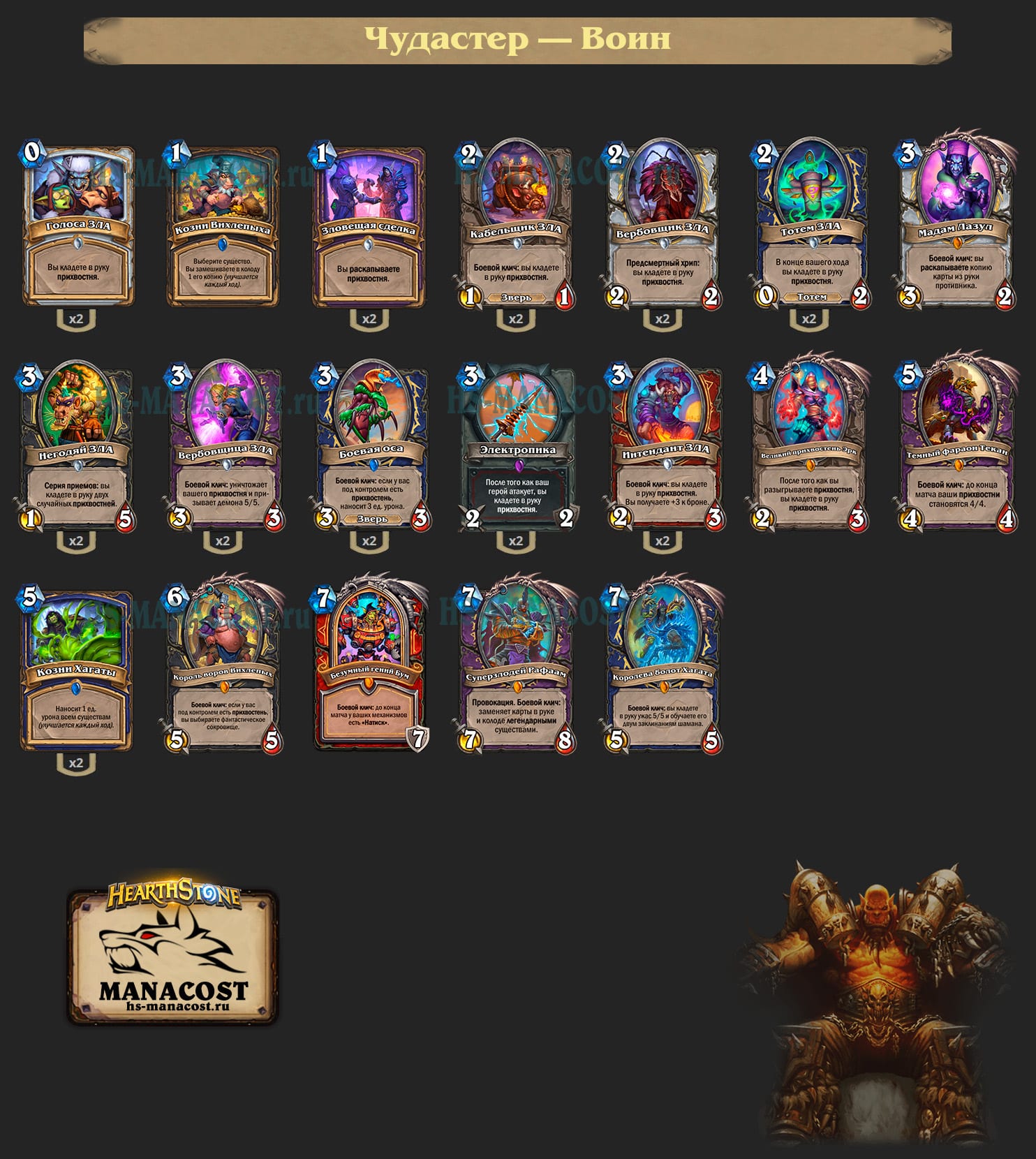 Когда Чудастер был в Стандарте, то одними из лучших колод считались Рыцарь смерти и Разбойник. Но мета, где участвуют одни лишь колоды Чудастера, закрытая и иная. Среди одних колод Чудастера сильнее всего себя показывает Чернокнижник. В целом вы можете пройти потасовку на ком угодно, хотя самые слабые варианты — это Маг и Друид.