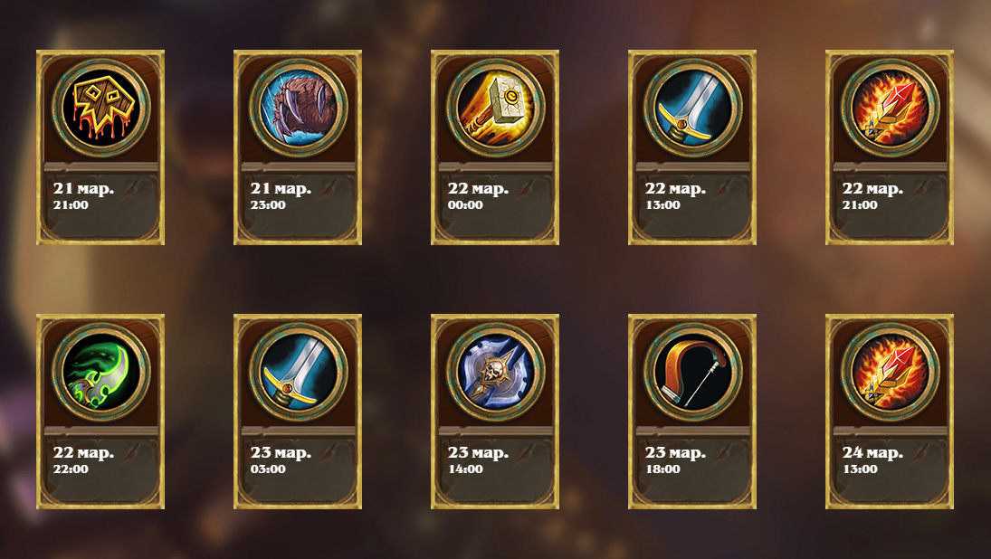 Выход дополнения «Фестиваль легенд» и 145 новых карт для коллекции состоится в апреле. Расписание показа карт вы можете найти в коллекции карт на официальном сайте. Следите за новостями — новые карты будут добавляться в список по мере их демонстрации!