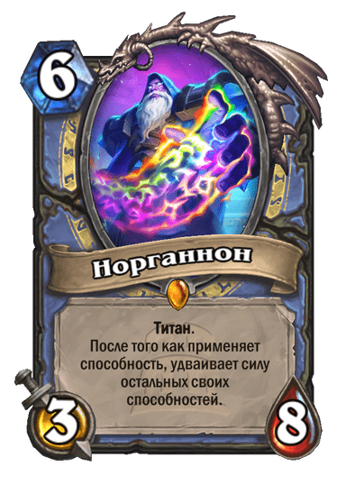 Каждый класс получит титана — божественное существо, рожденное из души мира, такого как Азерот. Существа с новым ключевым словом «Титан» обладают тремя мощными активируемыми способностями, которые они используют вместо обычной атаки. Каждый ход, включая тот, в который вы их разыгрываете, вы сможете выбрать одну из этих способностей. Каждую из способностей можно использовать только один раз. Когда вы используете все три, титан начнет атаковать как обычное существо.