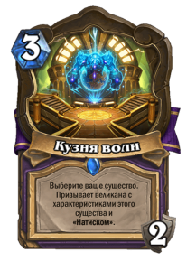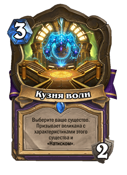 Используя могучие горнила, хранители создавали жизнь на Азероте и придавали ей форму. Теперь эта сила будет и у вас! За две единицы маны карту со свойством «Ковка» можно перенести в область с колодой и заменить на перекованную версию.