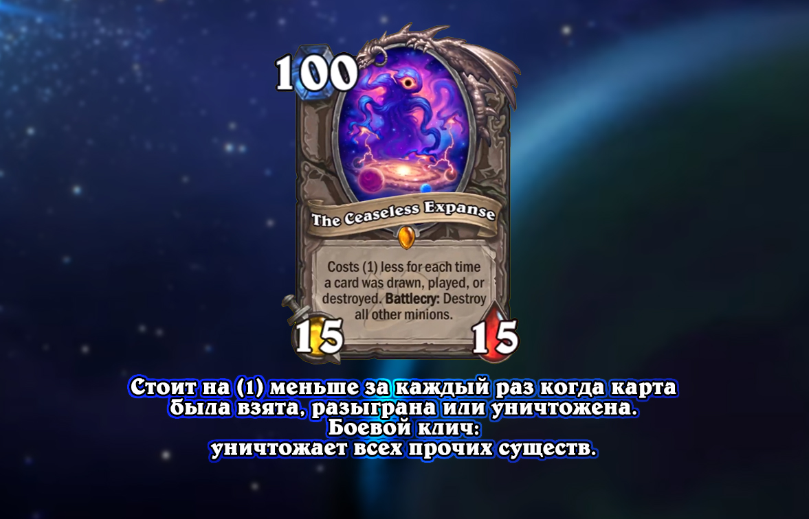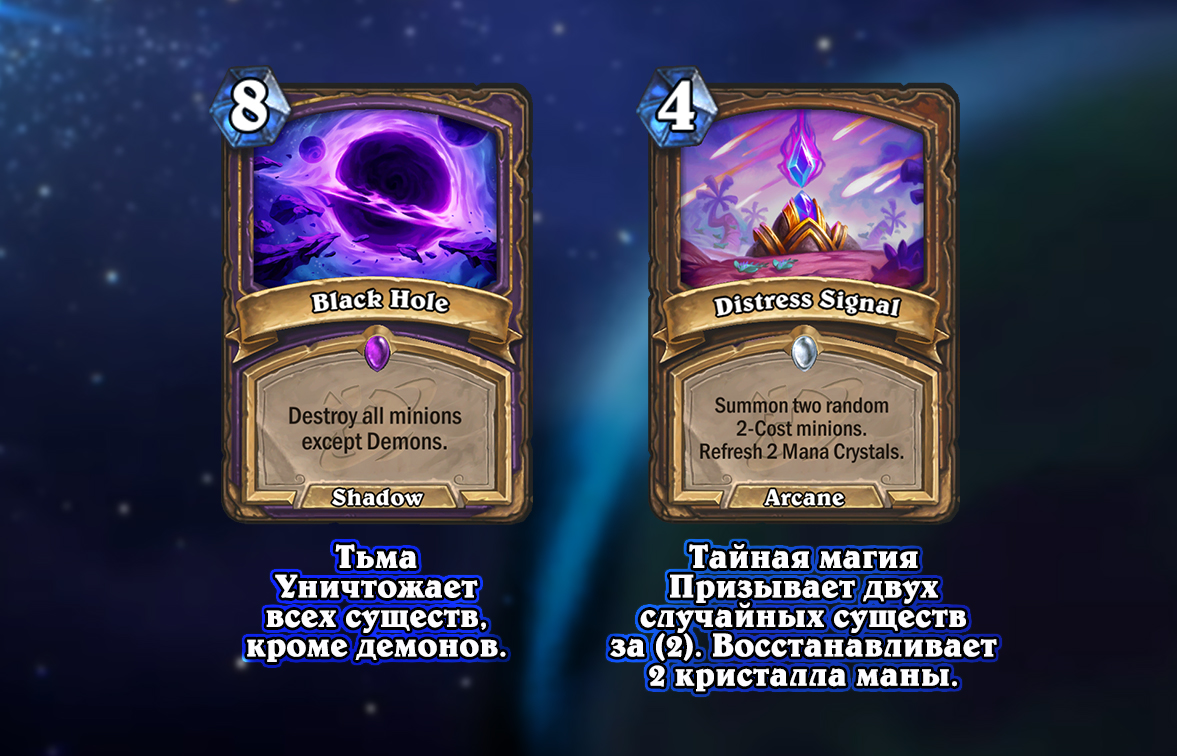 Космическая энергия буквально бьет через край на просторах Великой Запредельной Тьмы! Карты с возвращающимся свойством «Резонанс» получают особый эффект в первый раз, когда вы разыгрываете заклинание. Разыгрывайте карты с умом, чтобы получить прибавку к силе в нужный момент!