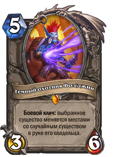 Темный охотник — это почти что жрец тьмы, только вуду побольше! Авторизуйтесь в Hearthstone после выхода обновления 19.6 и получите в подарок нейтральную легендарную карту «Темный охотник Вол’джин», которой сразу же сможете играть! Не более одной карты для каждой учетной записи.