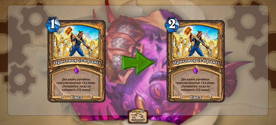 Комментарий разработчиков: на протяжении двух недель с момента выхода дополнения «Сплоченные Штормградом» мы наблюдали за развитием условий метаигры, и теперь мы внесем в игру изменения, призванные увеличить продолжительность матча на 1–2 хода. Обеспечить требуемый результат должны два момента: ограничение эффективности получения сверхмощных комбинаций, гарантирующих победу, и уменьшение урона, который можно быстро наносить, используя карты в руке, при игре с колодами, предназначенными для размещения карт на игровом поле. Надеемся, благодаря этим изменениям менее динамичные стратегии найдут применение в новых условиях метаигры. Мы продолжим наблюдать за ситуацией и при необходимости вносить дополнительные изменения.