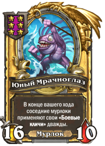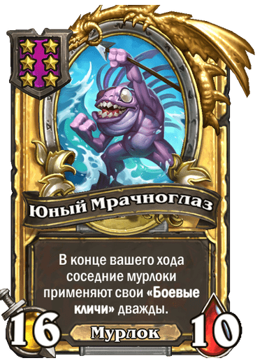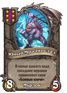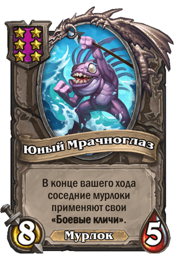 [6-й уровень таверны, мурлок] 8/5. В конце вашего хода соседние мурлоки применяют свои «Боевые кличи».