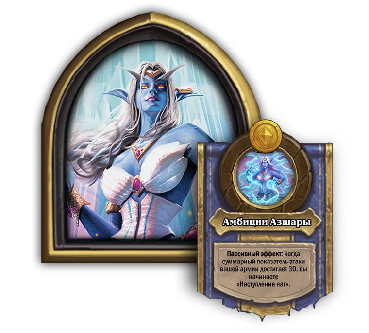Когда вы накапливаете достаточно атаки на столе, эльфийка Азшара становится нагой с новой силой героя.