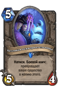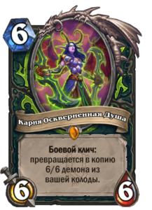 - После: [Стоимость 6] 6 атаки, 6 здоровья. Боевой клич: превращается в копию 6/6 демона из вашей колоды.