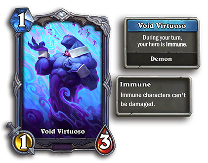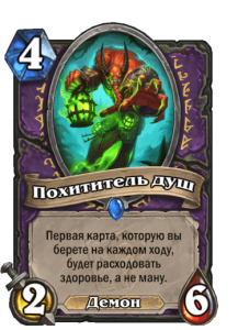 - После: [Стоимость 4] 2 атаки, 6 здоровья. Первая карта, которую вы берете на каждом ходу, будет расходовать здоровье, а не ману.