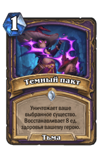 - После: Уничтожает ваше выбранное существо. Восстанавливает 8 ед. здоровья вашему герою.