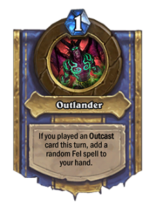 - После: Когда вы разыгрываете карту со свойством «Изгой» на этом ходу, вы кладете в руку случайное заклинание Скверны.