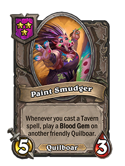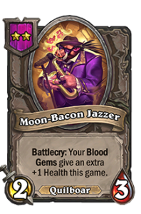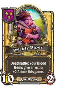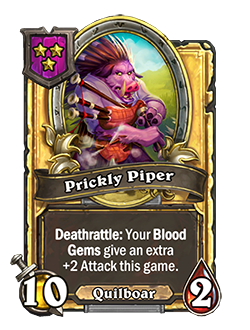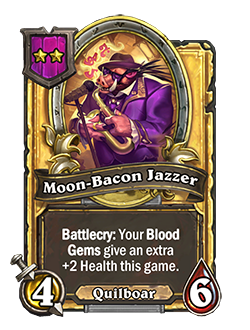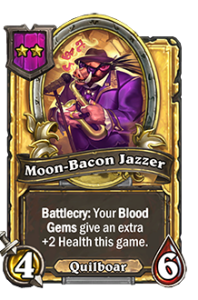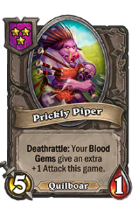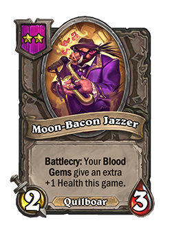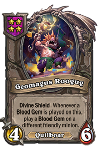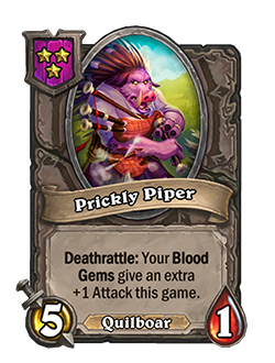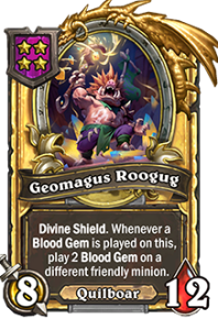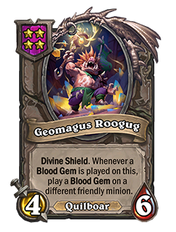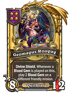 - До изменения: 3 атаки, 6 здоровья. Когда вы применяете кровавый самоцвет к этому существу, применяет кровавый самоцвет к другому вашему существу.