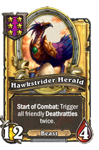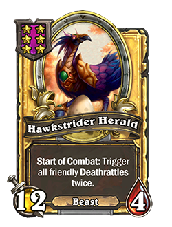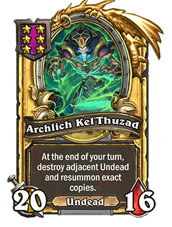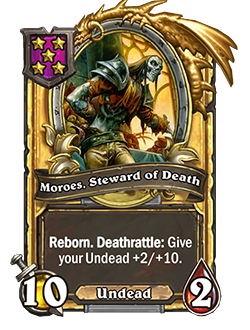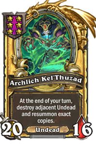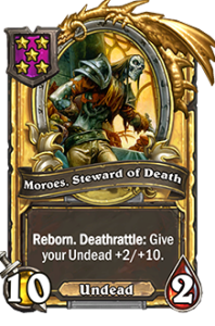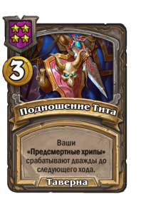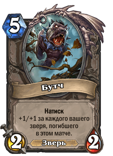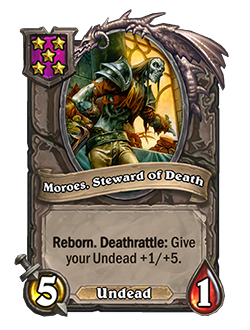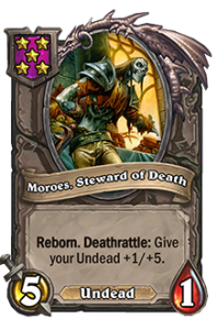 - После: 5 атаки, 1 здоровья. Перерождение. Предсмертный хрип: ваша нежить получает +1/+5.
