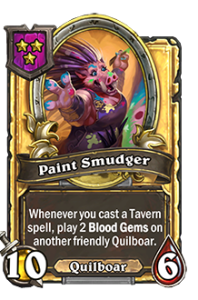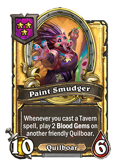 - После: 4 атаки, 6 здоровья. Божественный щит. Когда вы применяете кровавый самоцвет к этому существу, применяет кровавый самоцвет к другому вашему существу.