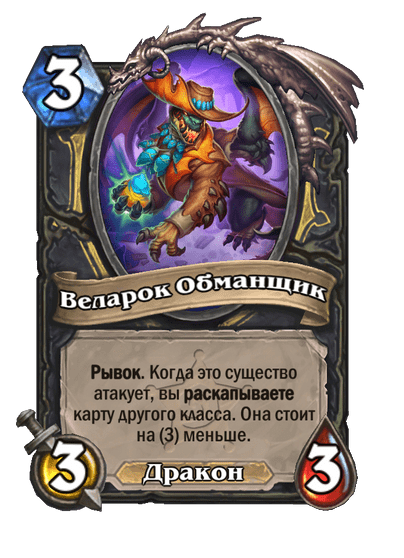Комментарий разработчиков: Разбойник на добыче — пример колоды, возникшей до мини-набора, которую мы бы хотели сдержать, чтобы дать пространство для развития новых стратегий. Мы рады, что недавнее усиление Веларока Ветрореза помогло колоде, которой очевидно так любят играть, и не хотели бы отменять его. Однако колода стала слишком мощной и популярной. Новые изменения Веларока и Шаркуна-разрушителя снизят взрывной потенциал Разбойника на добыче в ранней игре и дадут оппонентам больше времени на ответ, но не затронут веселые аспекты колоды.