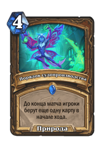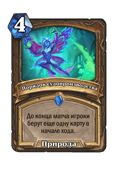 Комментарий разработчиков: У Друида есть несколько мощных архетипов, которые мы хотели бы затронуть в этом обновлении. Кактусовый голем — сильная карта во всех колодах класса, и она может быть немного слабее. Изменение Глашатая природы позволит чуть легче отвечать на ранние столы Токен Друида. Подвеска земли изменена таким образом, чтобы она была сильным защитным инструментом на более поздних стадиях игры, но не становилась проактивным способом затянуть партию. Отражения в осколках создавали слишком много отражений, из-за чего геймплей становился повторяющимся, поэтому мы убрали одно из отражений. И наконец, мы ослабили Порядок судопроизводства, т.к. игра становится менее интересной, когда колоды наподобие Милл Друида невероятно конкурентоспособны и определяют мету. При этом мы бы хотели, чтобы такие карты были в игре для тех, кому нравится подобный геймплей, но только не становились превалирующей стратегией в мете.