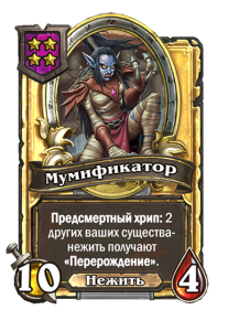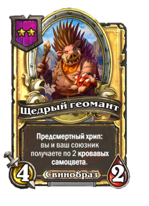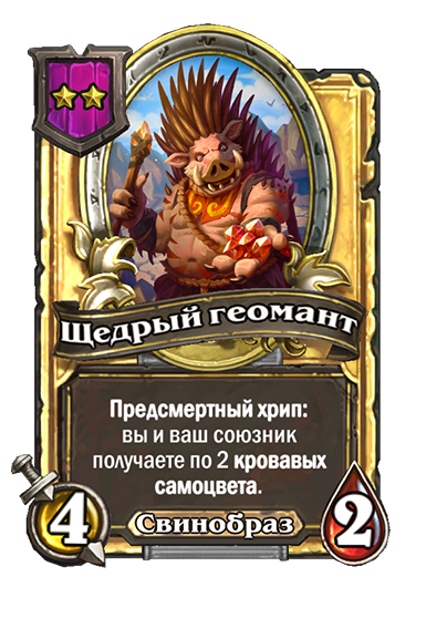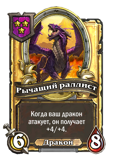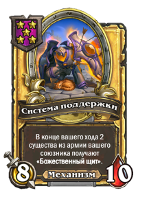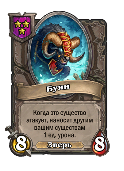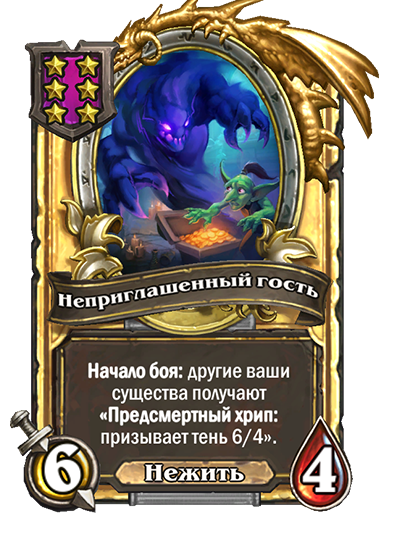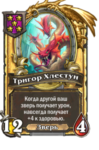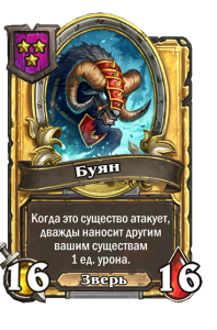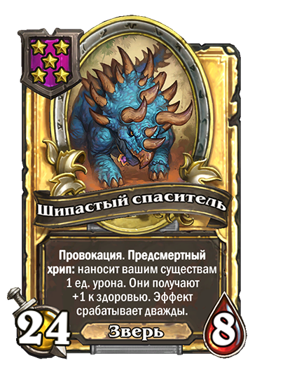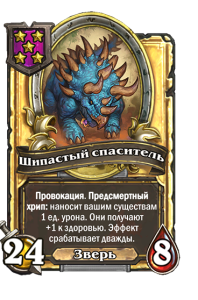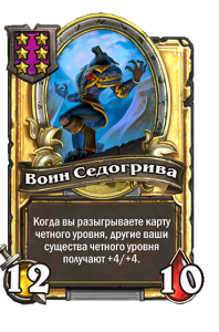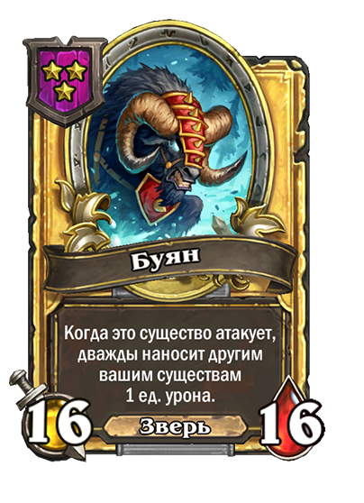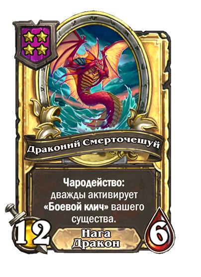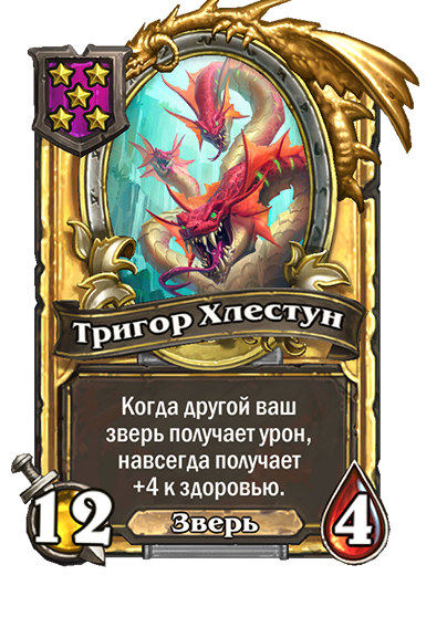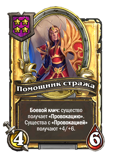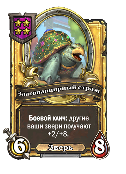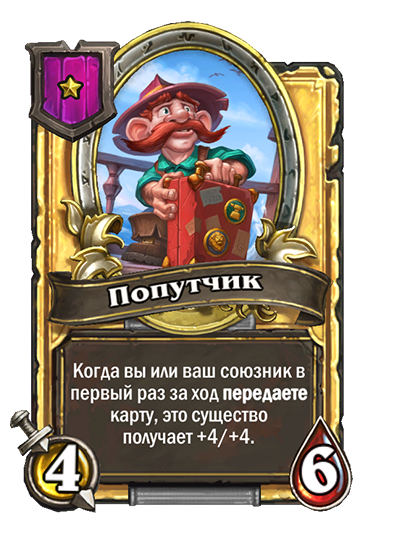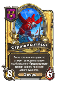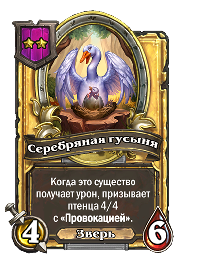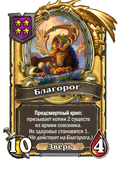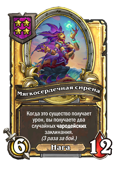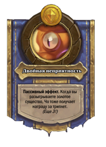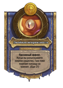 • Пассивный эффект. Когда вы разыгрываете золотое существо, Галл тоже получает награду за триплет. (Еще 3!)