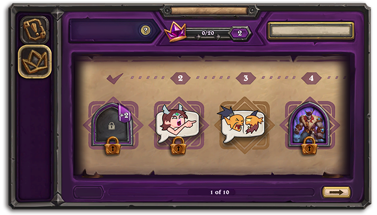 Отпразднуйте выход «Дуэтов» на Полях сражений с новым событием! С 23 апреля по 7 мая вы можете выбрать одну из двух Лент наград и заработать для нее опыт. Одна из них посвящена традиционному Hearthstone и включает 4 комплекта карт «Мастерская Чудастера», 2 стандартных комплекта карт и облик героя-паладина «Рыцарь Ирель». Вторая посвящена «Дуэтам» на Полях сражений и включает в себя комплект для догоняющих из «Мастерской Чудастера», стандартный комплект карт и облик Полей сражений «Голем Смотритель».