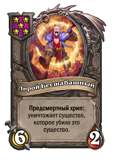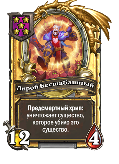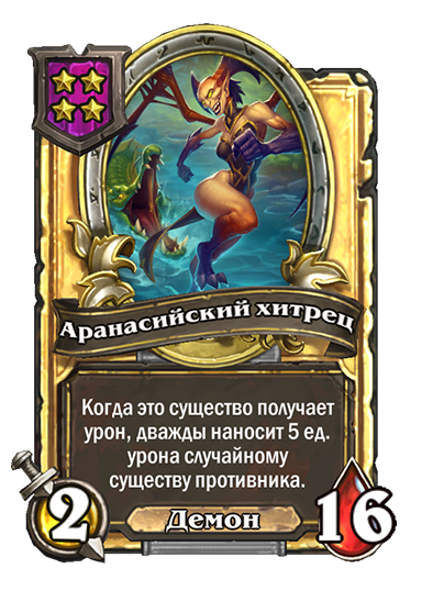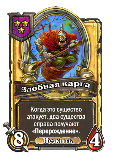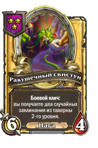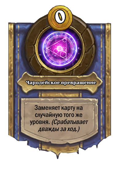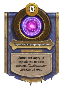 • [0 золотых] Заменяет карту на случайную того же уровня. (Срабатывает дважды за ход.)