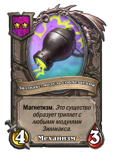 • Каждый модуль Зиллиакса можно встретить в таверне, но частота их выпадения снижена в 3 раза по сравнению с обычными существами 2-го уровня. Собрав любые три модуля, вы получите золотого Зиллиакса со всеми соответствующими свойствами.