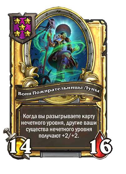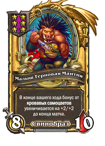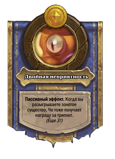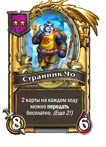 • Пассивный эффект. Когда вы разыгрываете золотое существо, Чо тоже получает награду за триплет. (Еще 3!)