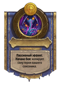 • Пассивный эффект. Начало боя: копирует силу героя вашего союзника.